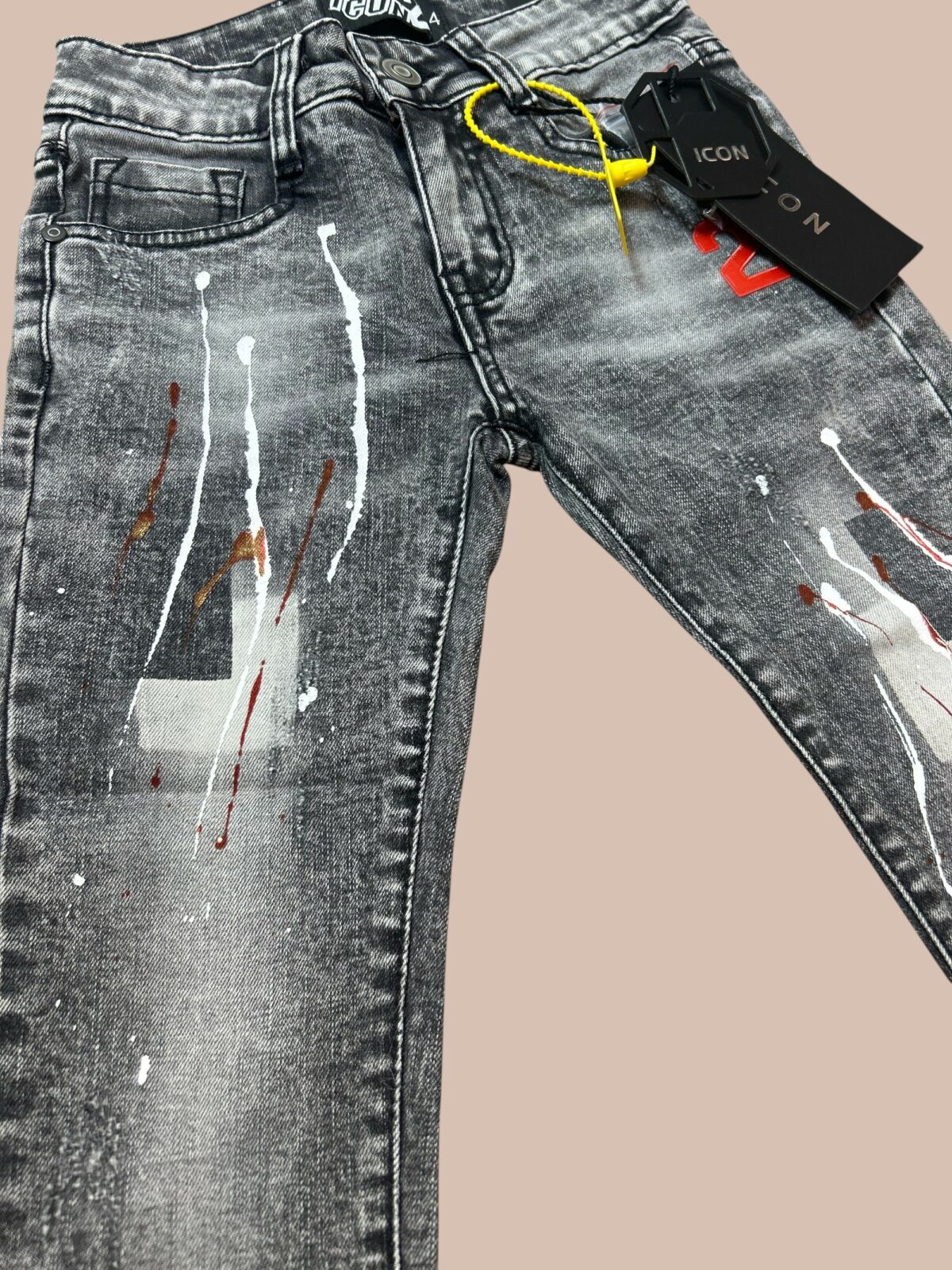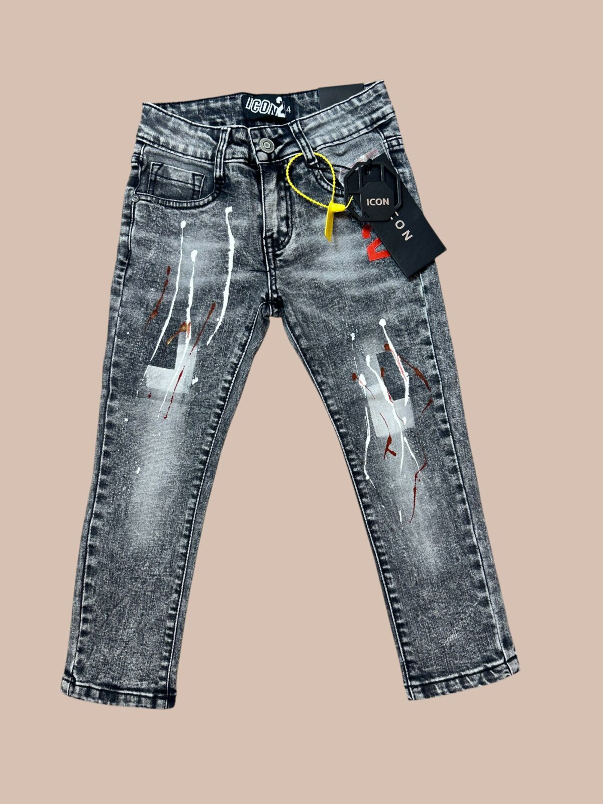 Geef elke outfit een stoere boost met deze grijze ICON spijkerbroek voor jongens. Het denim is afgewerkt met unieke verfspatten en een trendy gewassen look, waardoor de broek een eigentijds en urban karakter krijgt.